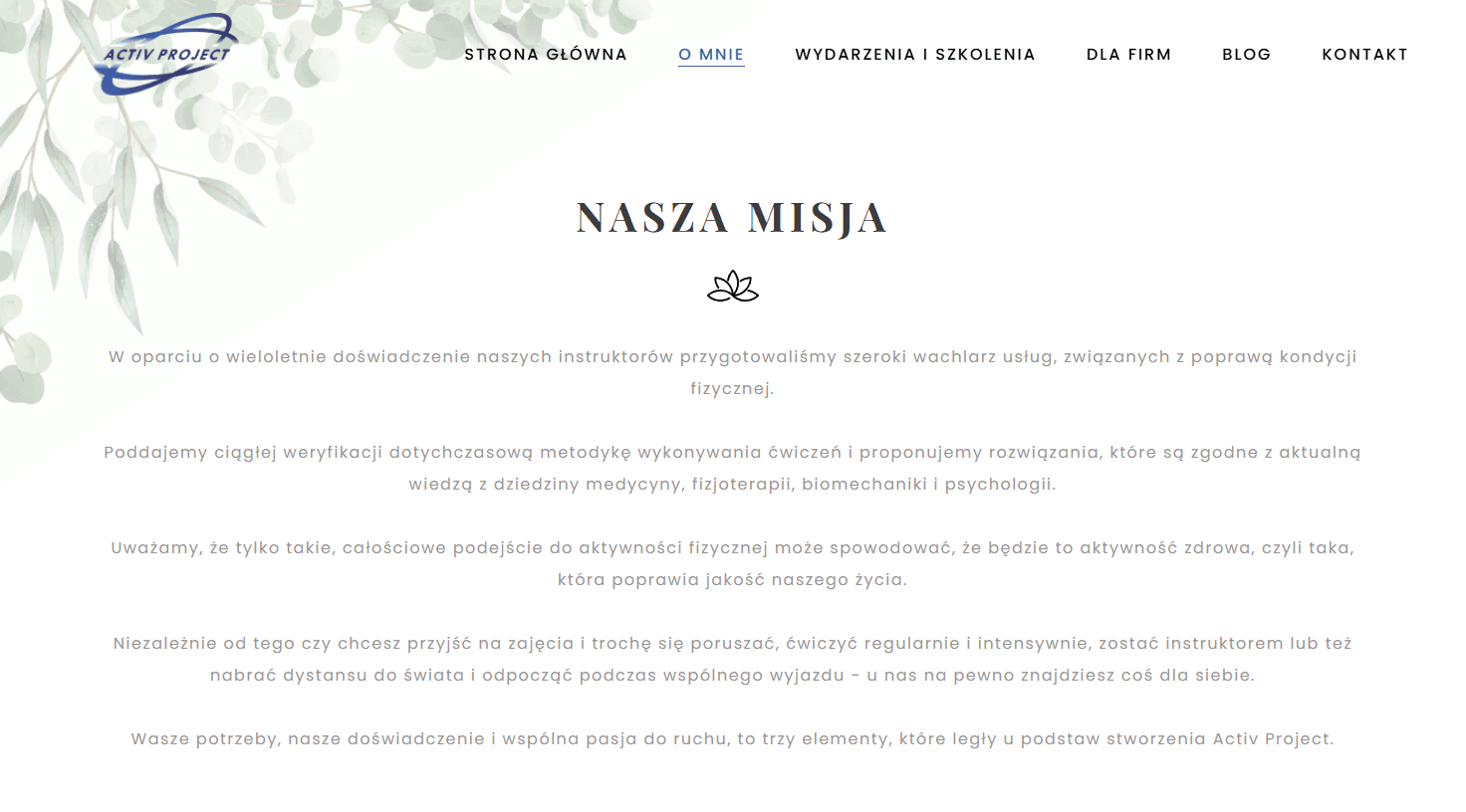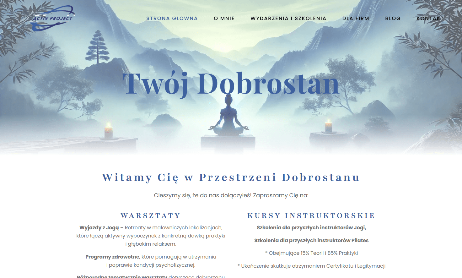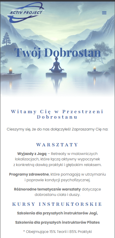 ActivProject to aktywne studio jogi z Chorzowa, które z powodzeniem łączy regularne zajęcia na miejscu z organizacją inspirujących, tematycznych wyjazdów jogowych (retreatów), a także prowadzi bloga poświęconego filozofii i praktyce jogi, budując tym samym zaangażowaną społeczność. celu cyfrowego wsparcia tej zróżnicowanej oferty, stworzyłem dla ActivProject stronę internetową, której intuicyjna nawigacja, estetyczny design oraz podział na przejrzyste zakładki umożliwiły skuteczne prezentowanie harmonogramu zajęć, wyjazdów i bloga, znacząco przyczyniając się do budowania jej profesjonalnego wizerunku w sieci.