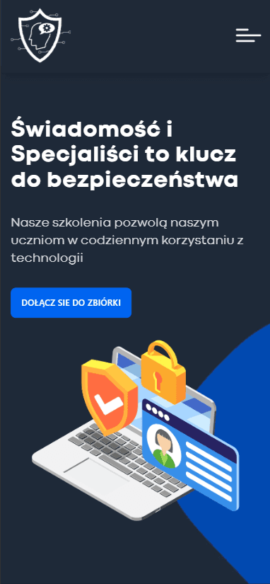 Zaprojektowałem stronę typu one-page dla projektu o cyberbezpieczeństwie, w którym brałem udział. Strona jest zwięzła i intuicyjna, z płynnym przewijaniem, które prowadzi użytkowników przez kolejne sekcje. Zawiera informacje o zakupie VR dla szkół, naszych celach, korzyściach płynących z projektu oraz dane kontaktowe. Każda sekcja jest jasno oznaczona i wzbogacona o ikony i grafiki związane z tematyką cyberbezpieczeństwa. Responsywny design strony zapewnia doskonałe wrażenia na różnych urządzeniach, a przemyślany układ treści pozwala na szybkie i łatwe zapoznanie się z kluczowymi informacjami. Strona skutecznie przedstawia nasz projekt, promując edukację i świadomość w zakresie cyberbezpieczeństwa.